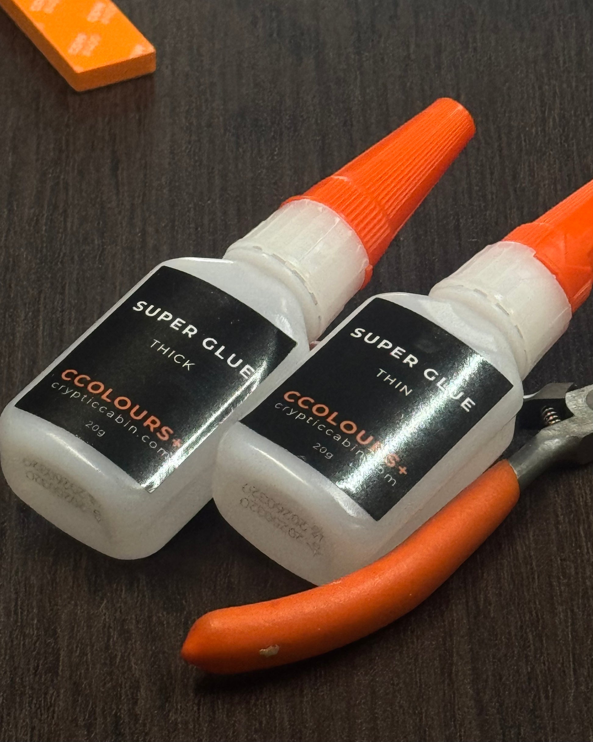 Thick – A gel-consistency formula ideal for assembling resin and metal models. Its slow-set nature allows precise adjustments before curing, making it perfect for complex builds and clean joins.